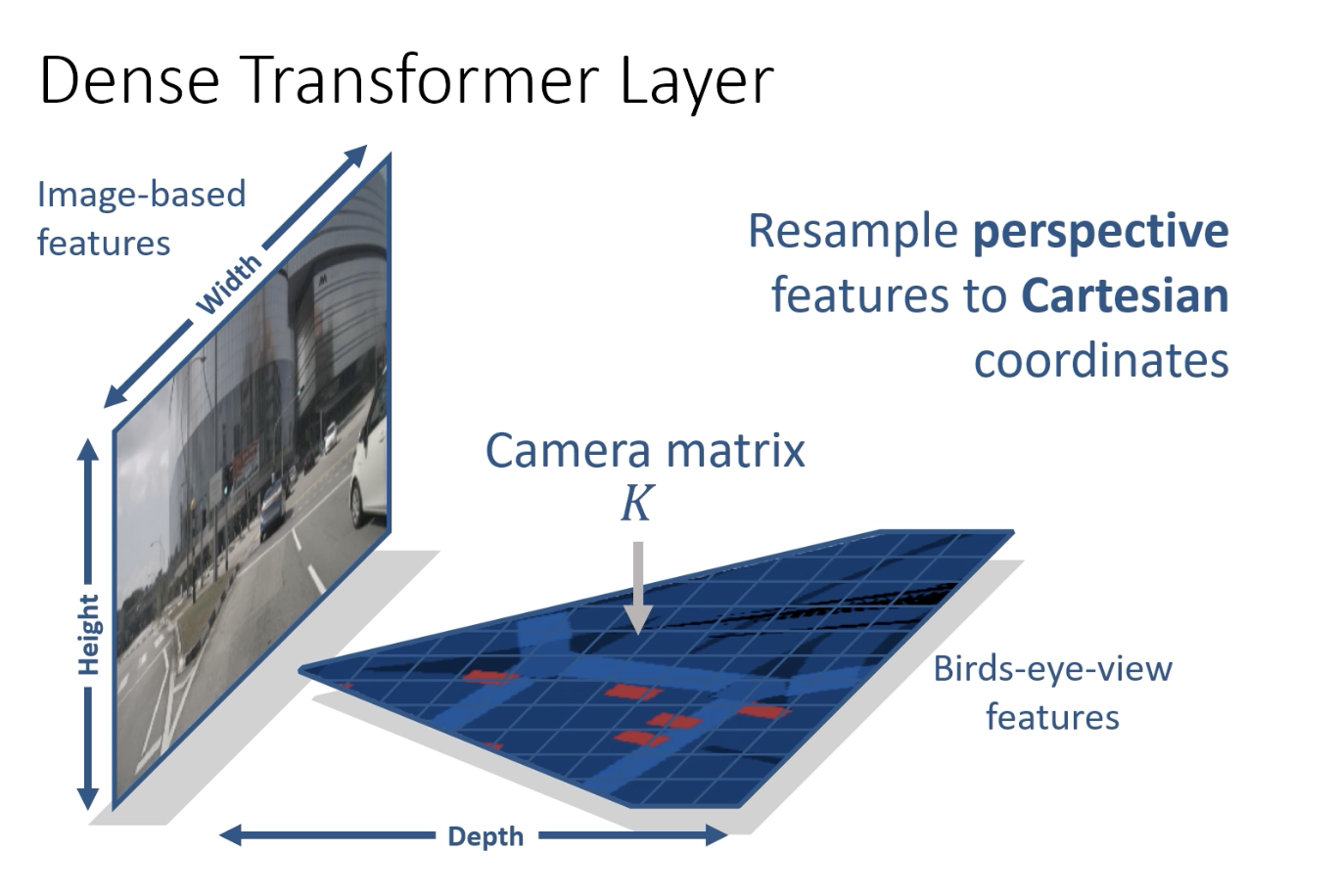 - Each layer is responsible for transforming part of the image in BEV.