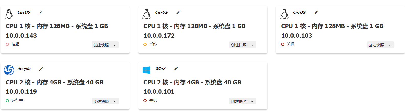 - 云主机启动、关闭、暂停、挂起、恢复等