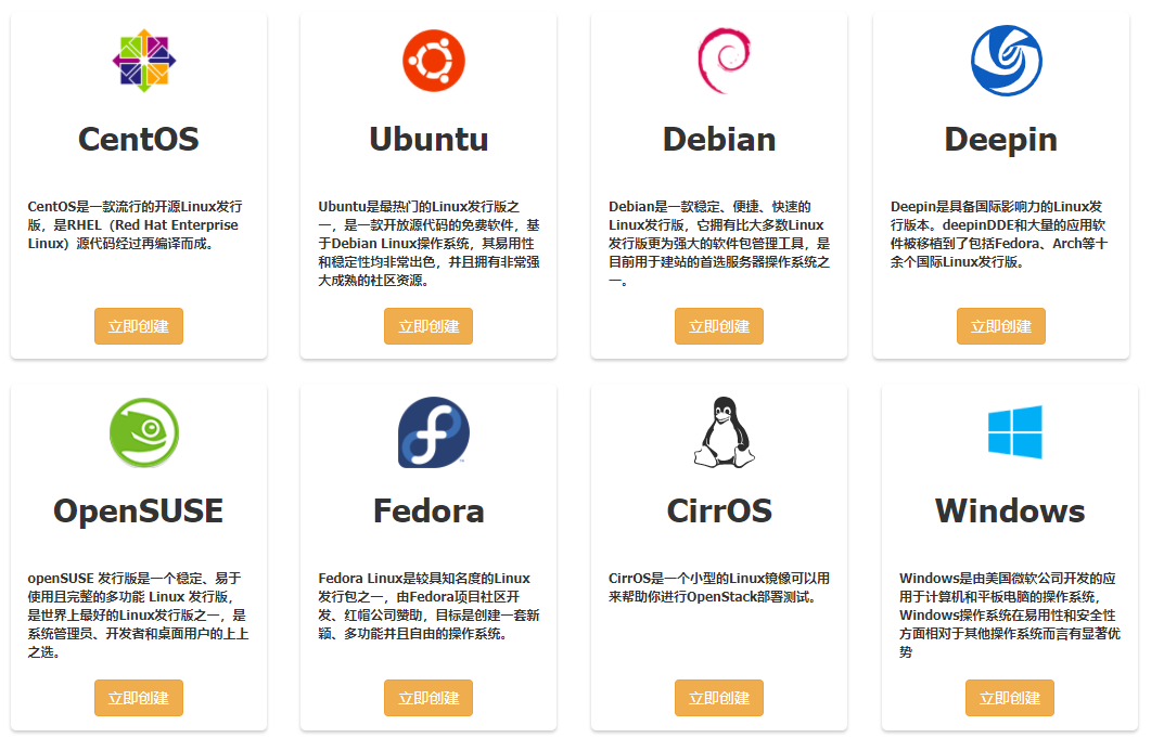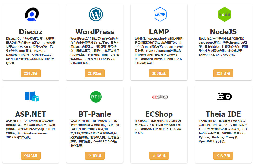 支持主流操作系统镜像以及应用镜像的创建以及使用