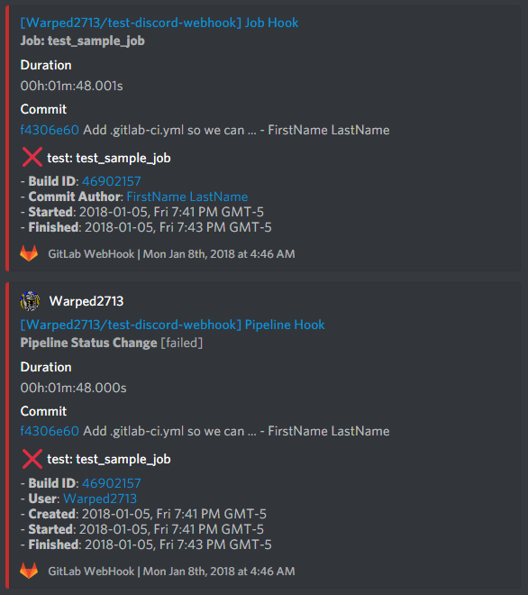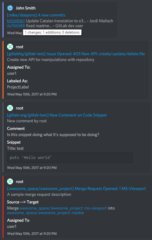 <iframe width="560" height="315" style="margin-bottom:32px;" src="https://www.youtube.com/embed/A9ISlEma0wA" frameborder="0" allowfullscreen></iframe>Similar to Discord's built-in support for GitHub webhooks, this is a custom implementation using the GitLab webhook API and DiscordJS. May be extended later to support Twitter webhooks as well.