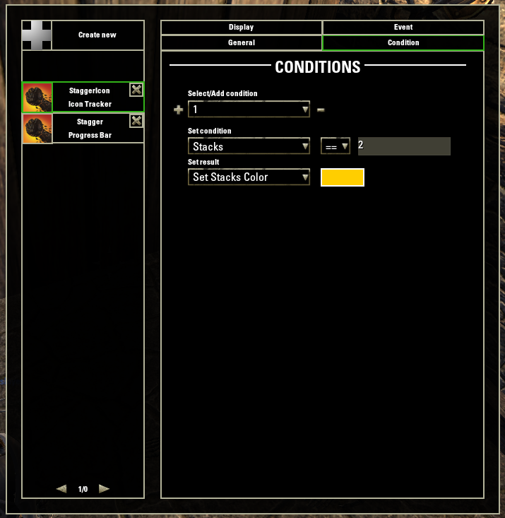 Set first condition to change stack text color to yellow when 2 stacks are applied