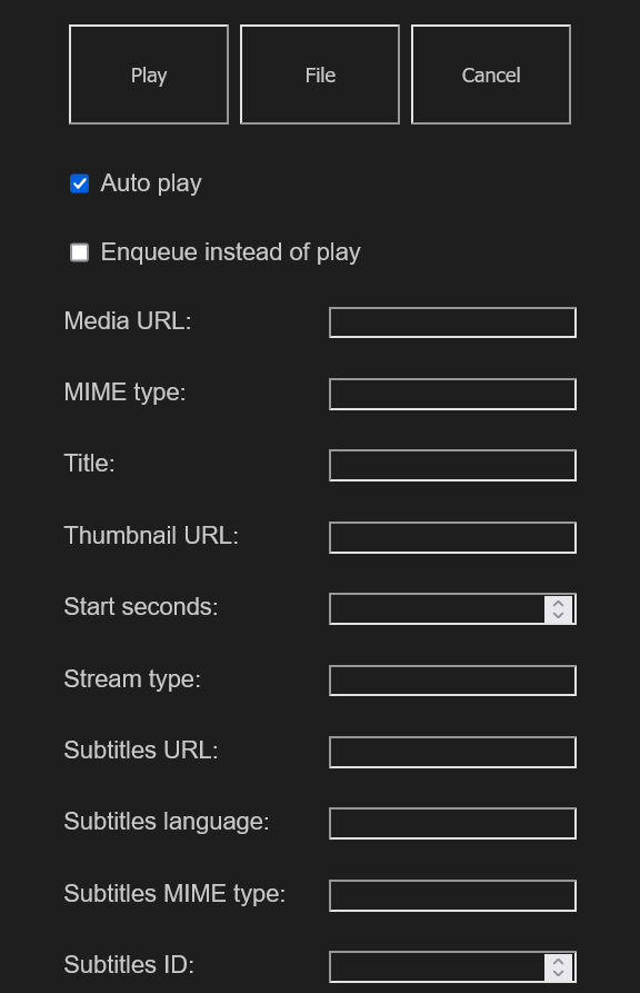 - Paste media URL to cast; or click the "File" button to browse local files.