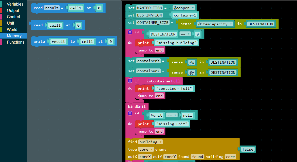 A scratch-like visual editor for Mindustry's Logic Processors available at https://mlog.reheatedcake.io/.