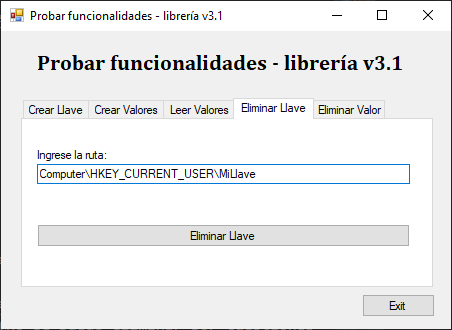 NOTA: Ésta funcionalidad solo eliminará un valor, si desea eliminar todos los valores dentro de una llave, usted puede usar la función anterior "Eliminar Llave".