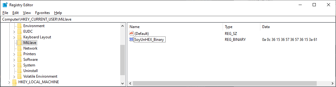 Console.WriteLine(registro.CreateKeyValue_Binarie(path, keyName, valueData)); // Camino de ruta de la llave