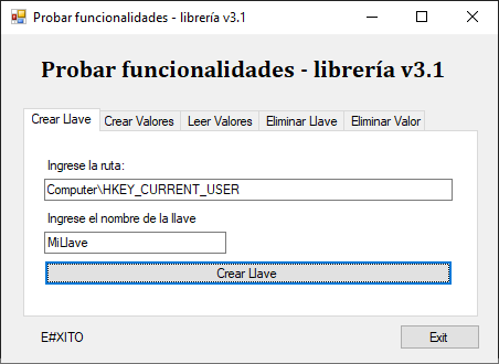 Esta librería fue desarrollada para Crear, Leer y eliminar llaves del registro de Windows (REGEDIT) y poder realizarlo de la manera más sencilla posible.