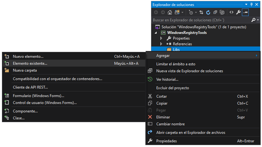 => En la Carpeta Libs =>Clic derecho => Agregar => Elemento Existente