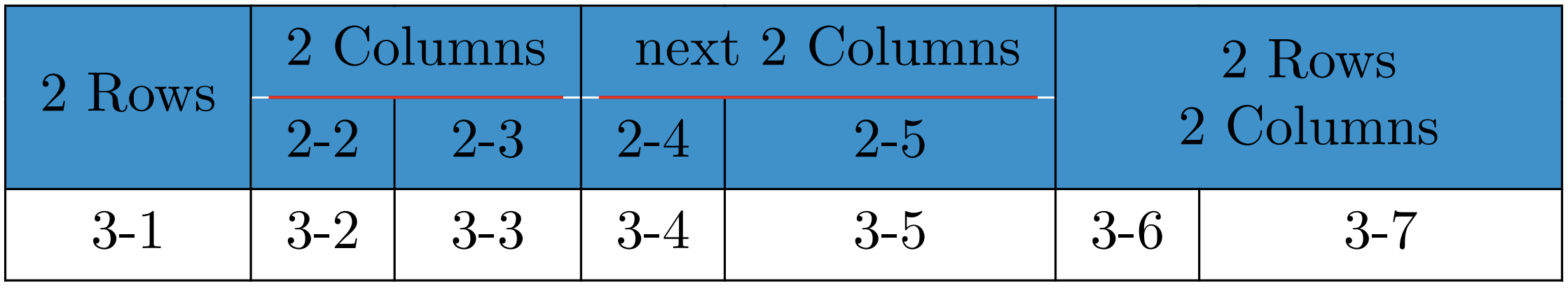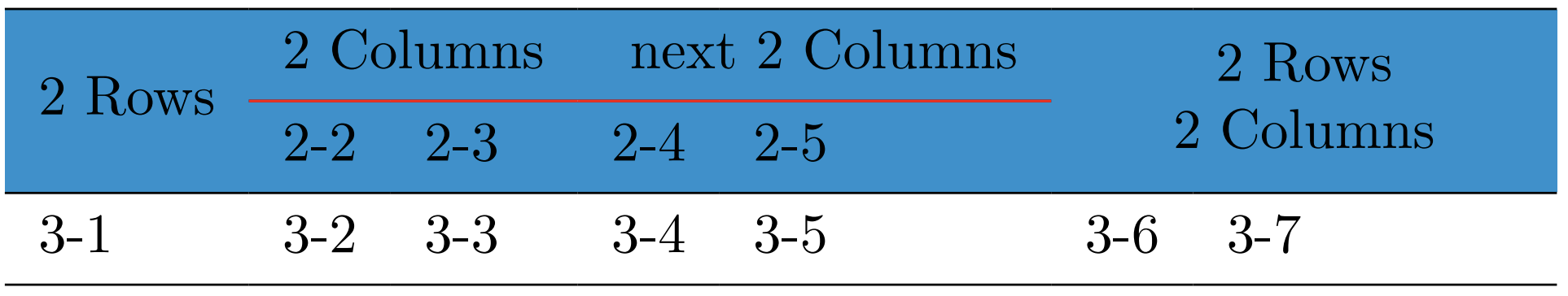 & \SetCell[c=2]{c}\cellcolor{blue!25} next 2 Columns