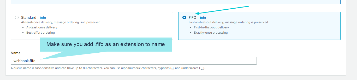 -- Path override: add the SQS queue path here (not the whole URL). The one you noted down in Point A.6 (Queue URL). This will look something like 4998656233/webhook.fifo