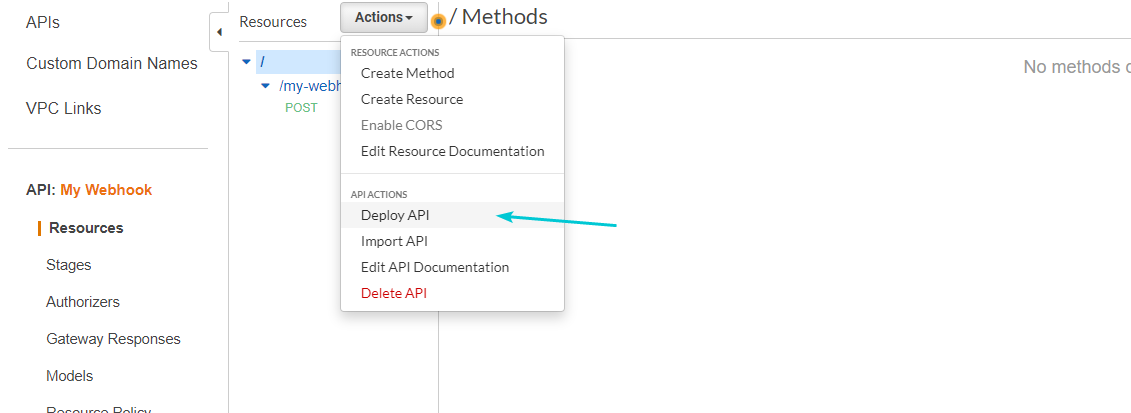 API gateway will be used to receive your webhook calls as a proxy