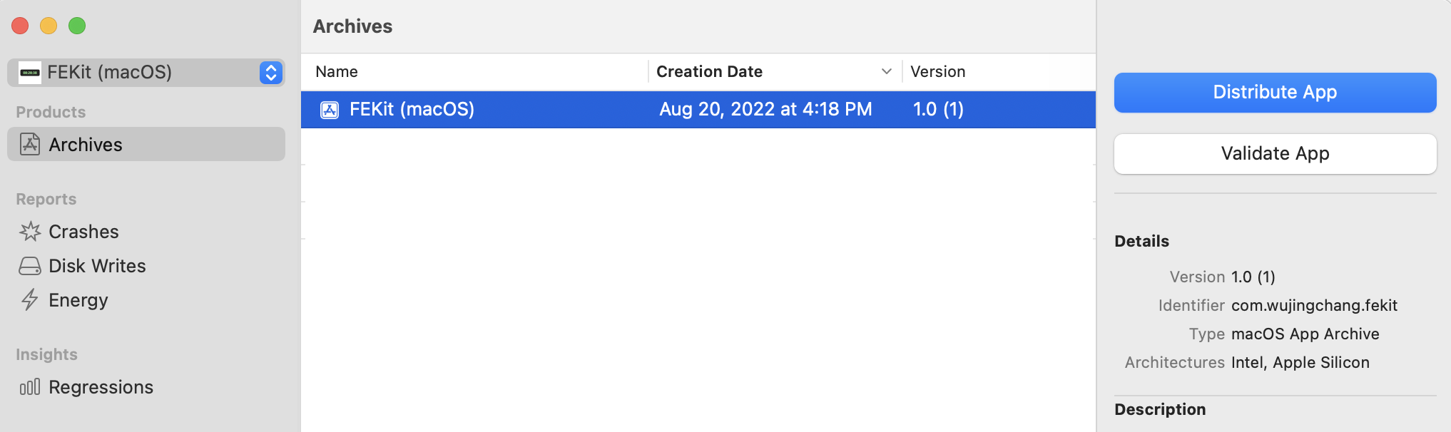 构建完后,Xcode 会弹出窗口让你选择 Distribute App 或 Validate App,这里我们选择前者: