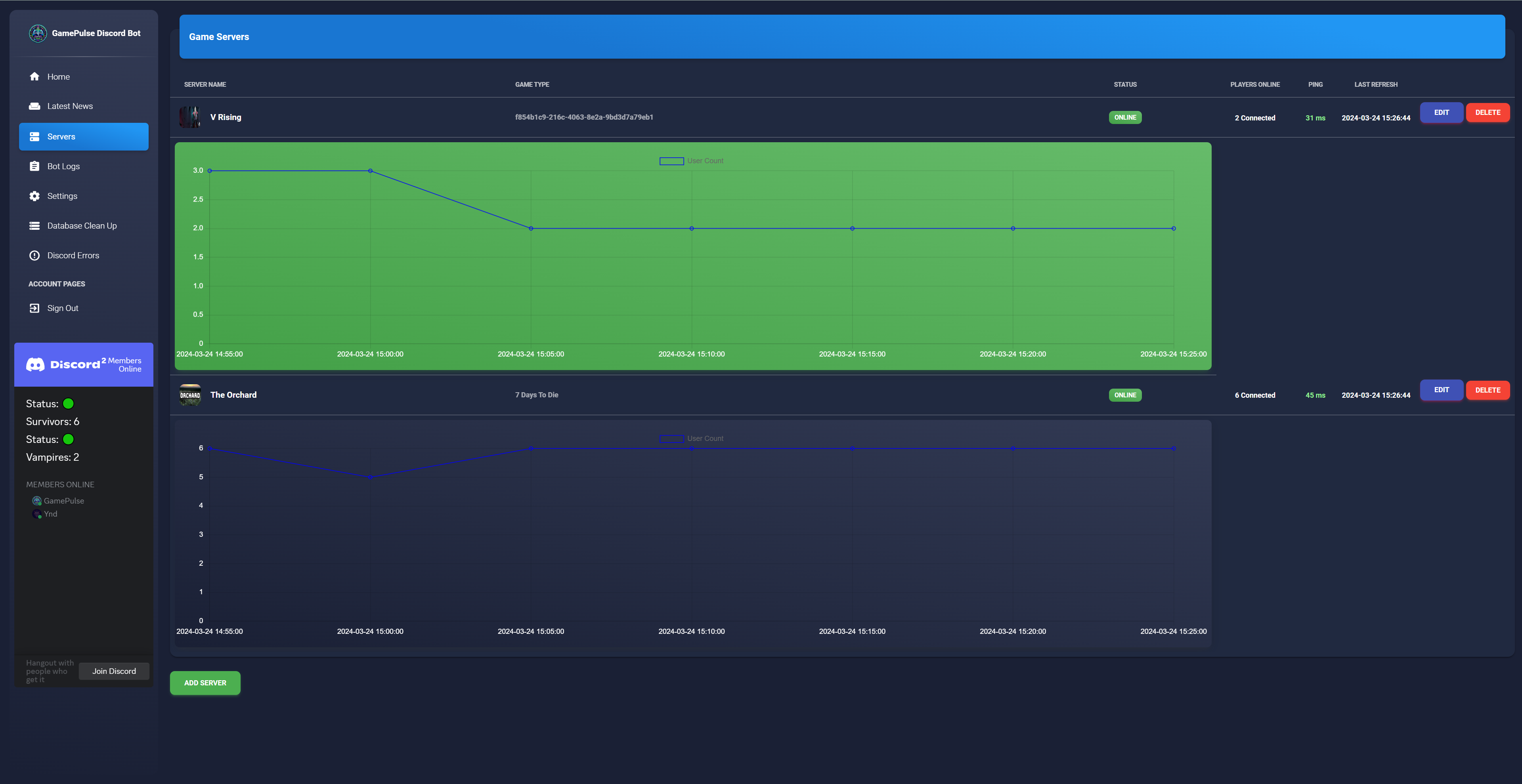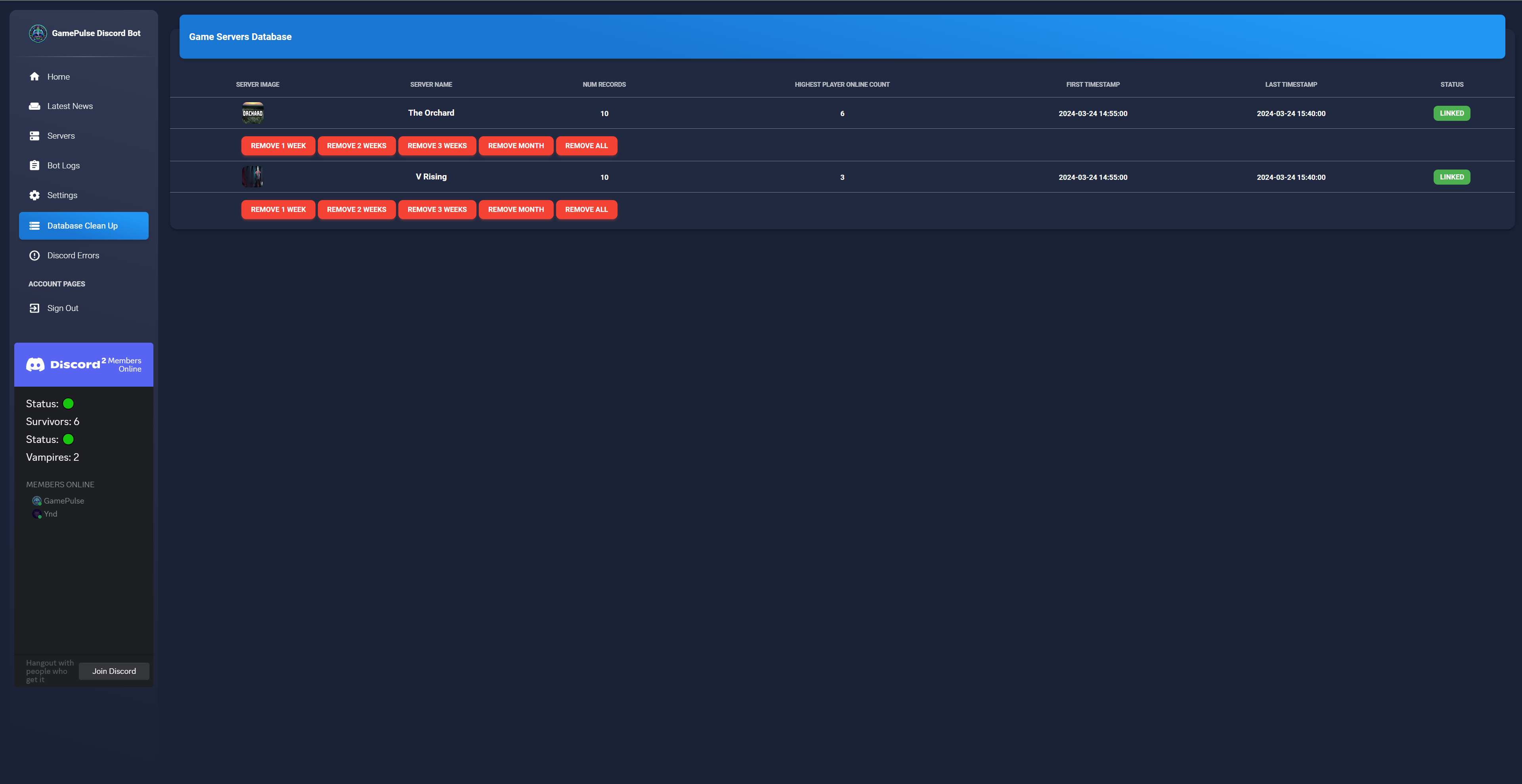 - Manage Servers, View History, Look at Leaderboards via the Web!