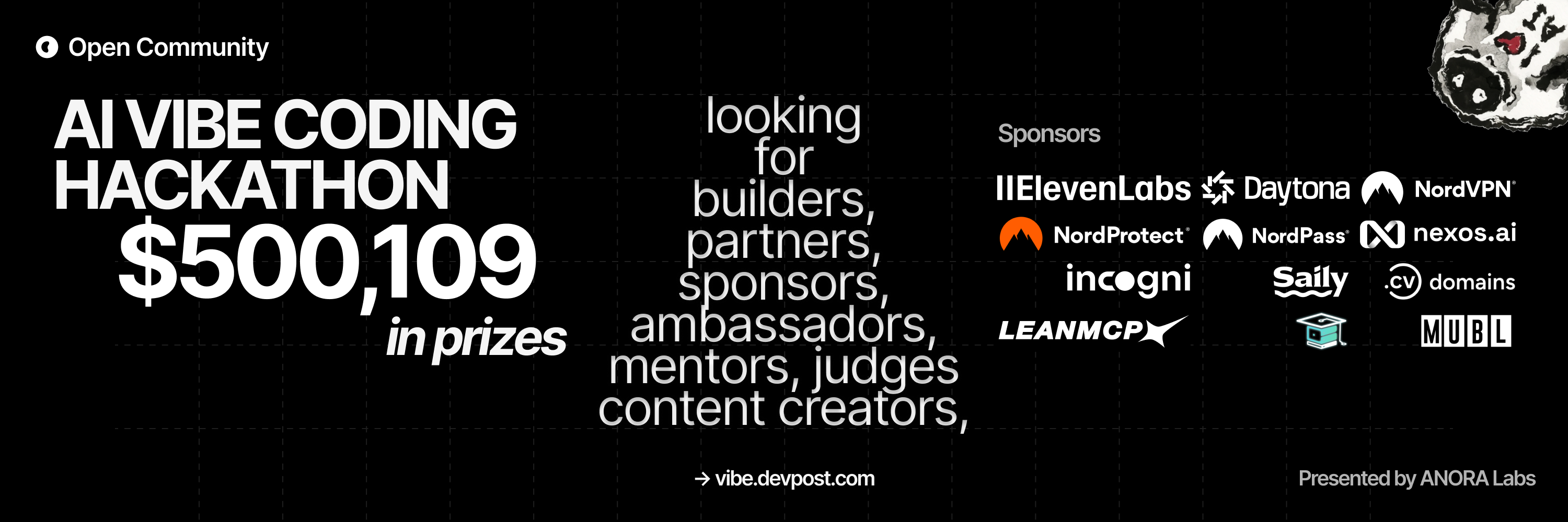 Join "AI VIBE CODING HACKATHON" organized by Open Community. Presented by ANORA Labs.