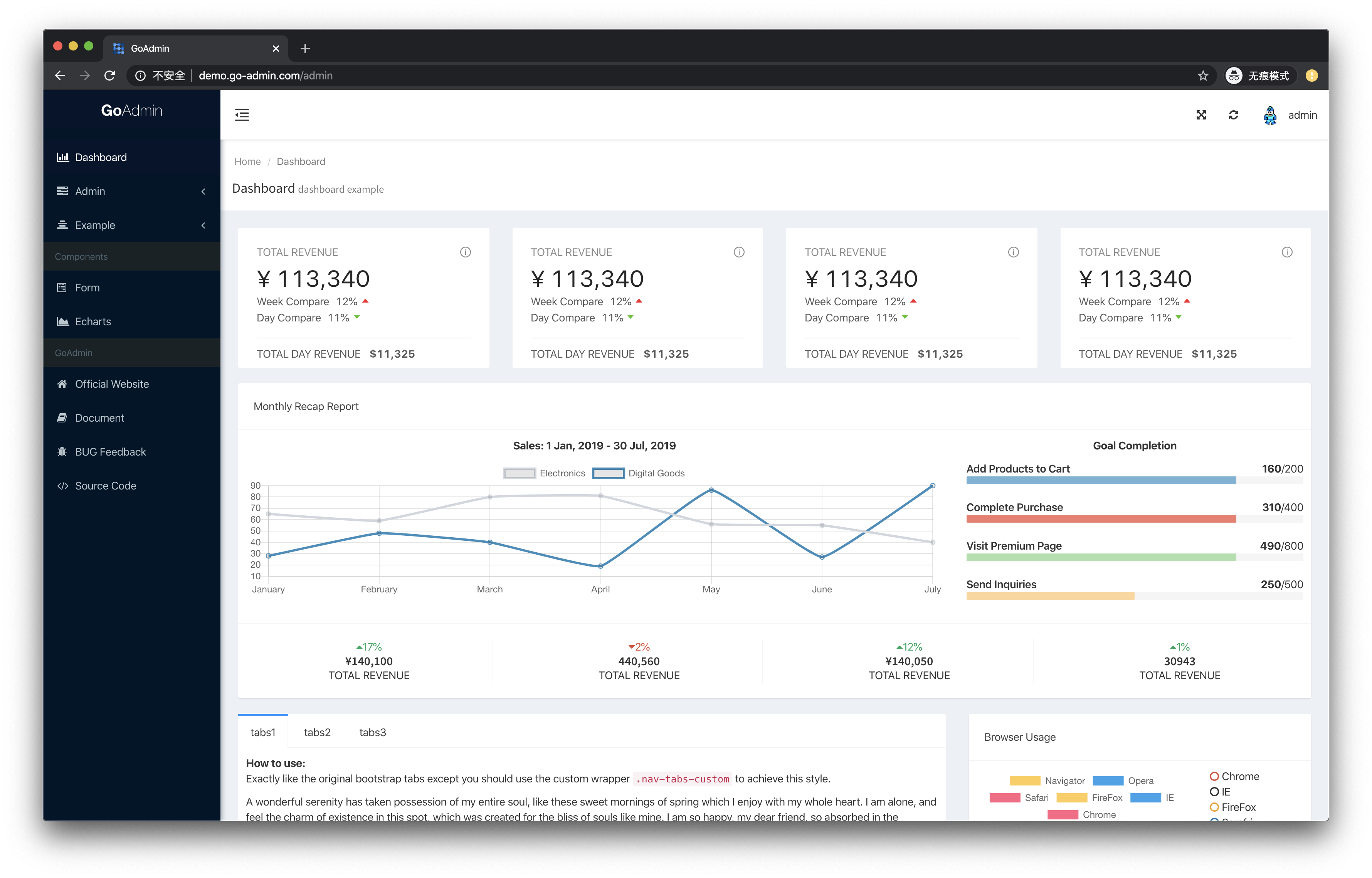 GoAdmin is a toolkit to help you build a data visualization admin panel for your golang app.