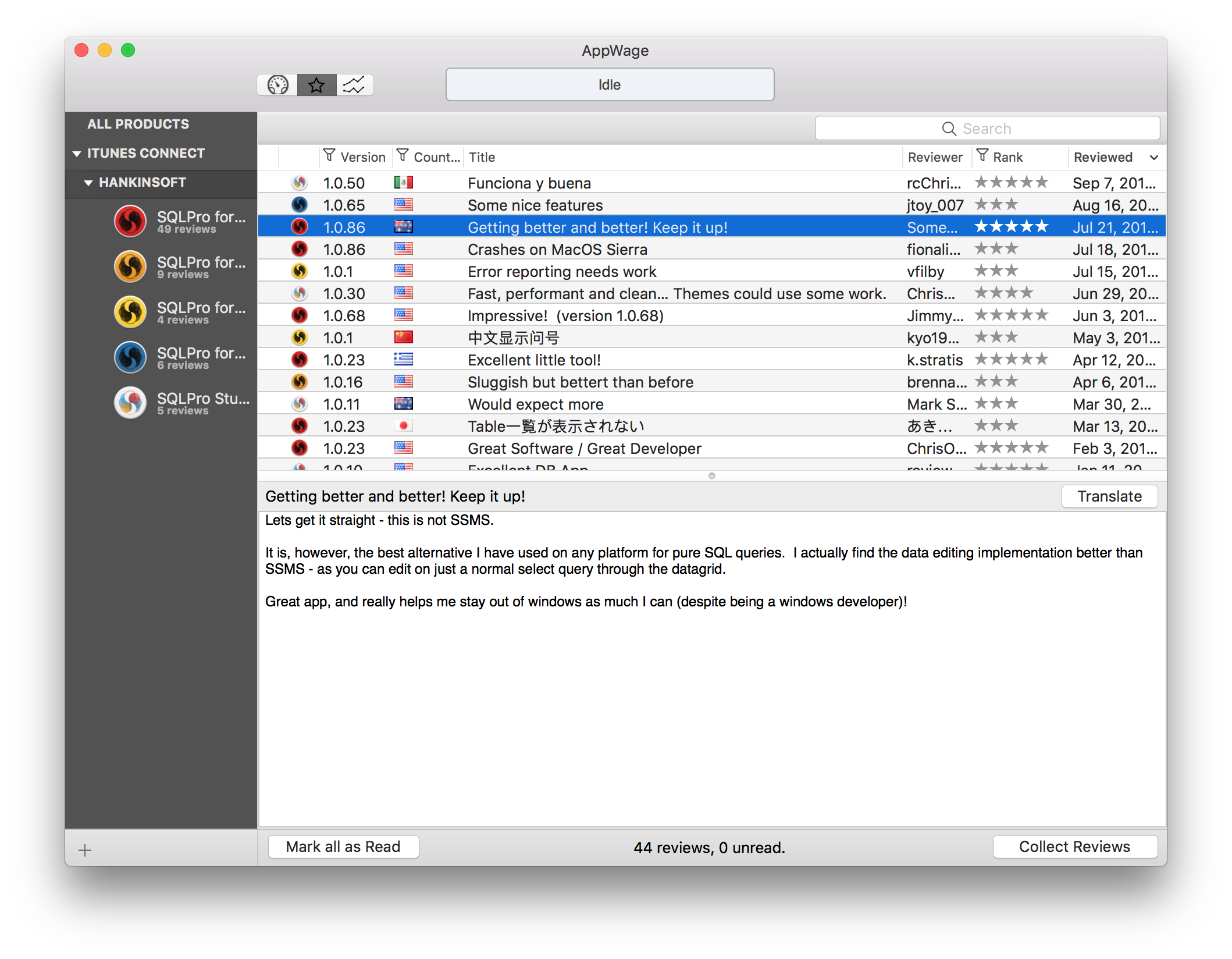 - Inline filtering of reviews by title/description or rank.