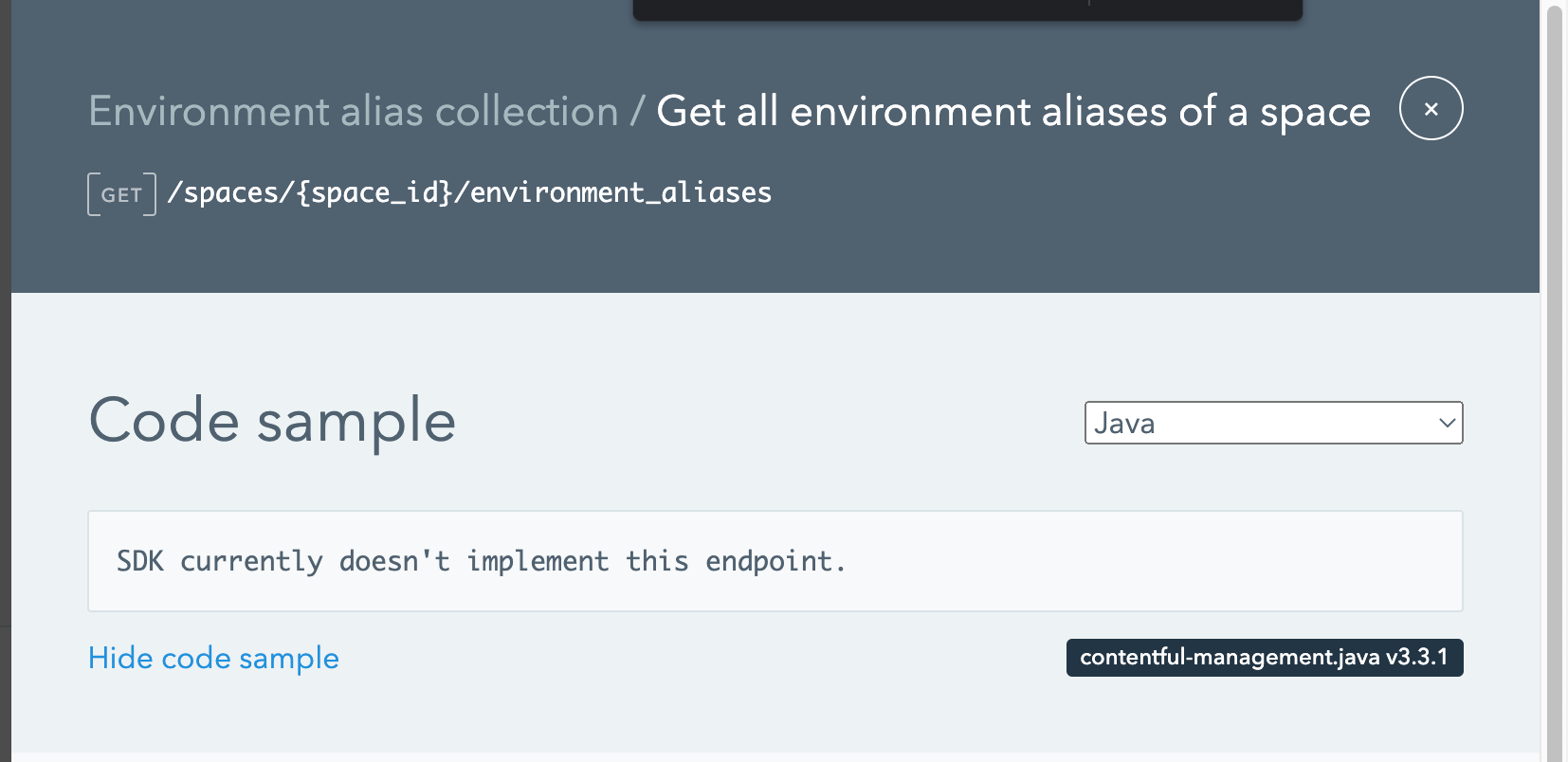 https://www.contentful.com/developers/docs/references/content-management-api/#/reference/environment-aliases/environment-alias-collection/get-all-environment-aliases-of-a-space/console/java <img width="827" alt="image" src="https://user-images.githubusercontent.com/62906763/159204457-5e677ffe-d1f7-49b2-bf26-5e7ebf457a31.png">