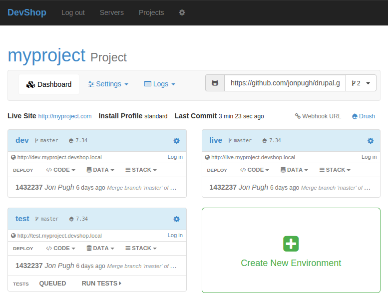 DevShop deploys your sites using git, and allows you to create unlimited environments for each site. DevShop makes it very easy to deploy any branch or tag to each environment