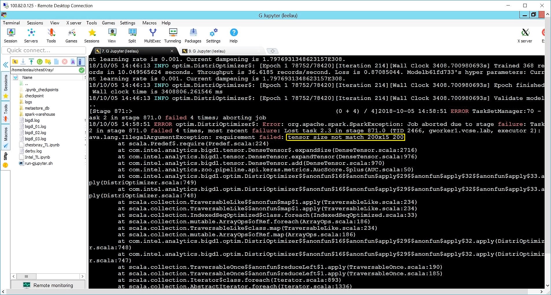 When I am trying to run the transfer-learning code with these parameters [4 executors -> 23 cores -> 4*23=92 and again 92*4=368 batch_size] to submit the job either in the notebook or spark-submit it completes the model training successfully but at the time of "Validate Model" I am seeing this error.