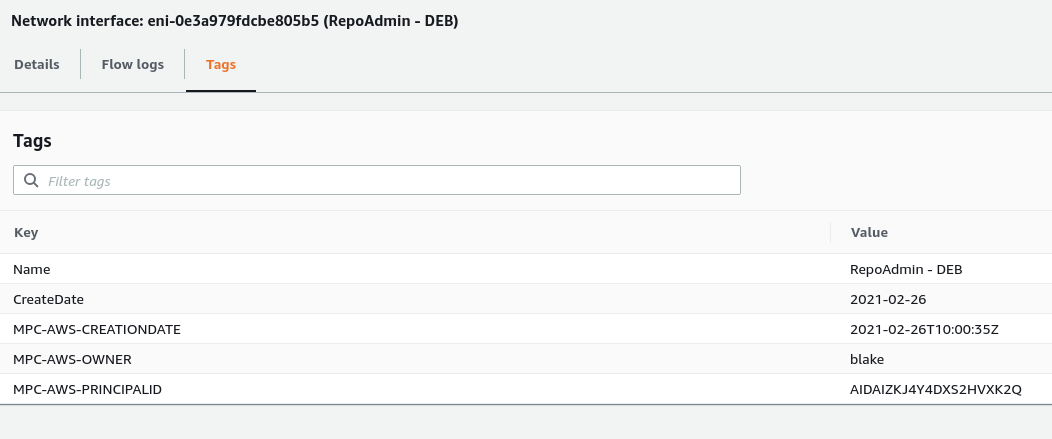 This error still occurs when there are tags present on the eni as follows: