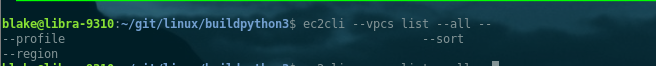 --all and --region options are mutually exclusive; i.e. if one is present already on the command line, the other should be presented during a subsequent bash completion operation (see image)