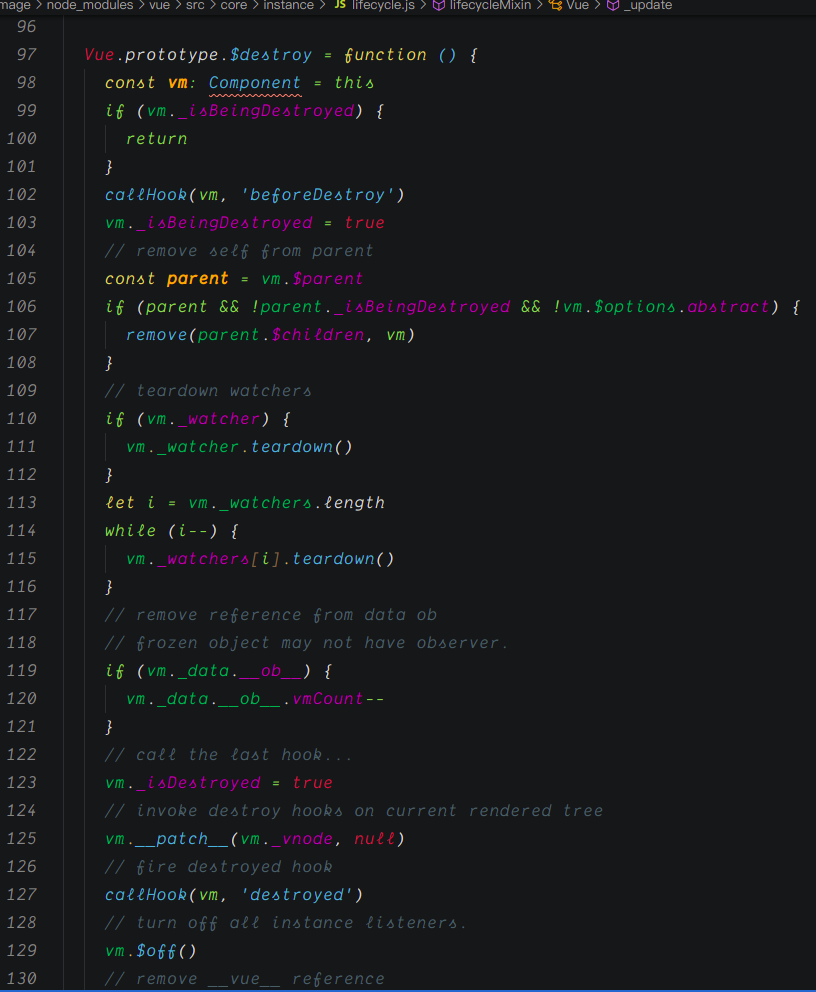 实例销毁之前调用。在这一步,实例仍然完全可用。 - destroyed