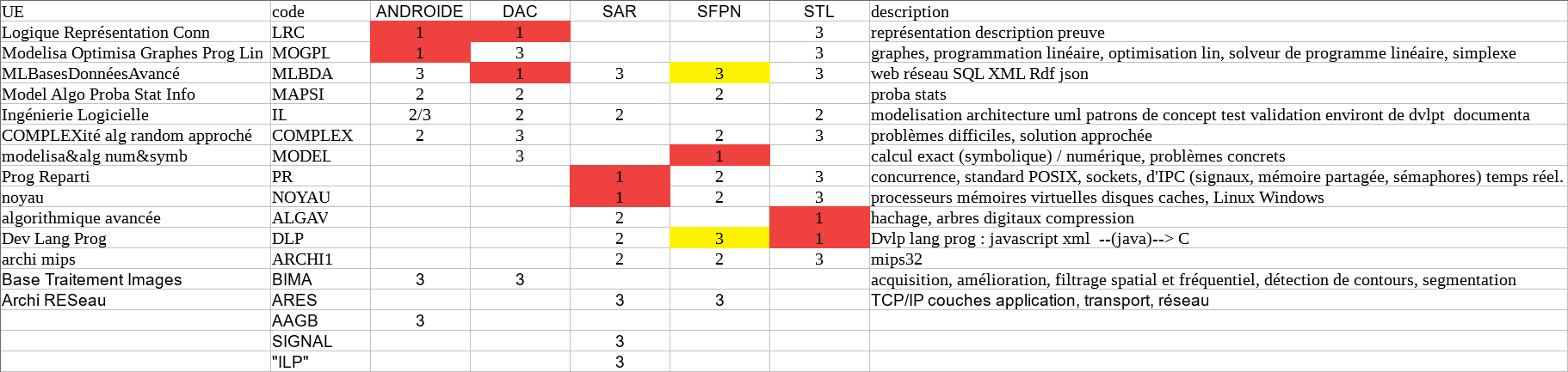 - Résultats obtenus à partir des sites des UEs, les informations entre le site dédié et la description sur http://www-master.ufr-info-p6.jussieu.fr/lmd/ ne sont pas toujours cohérentes.