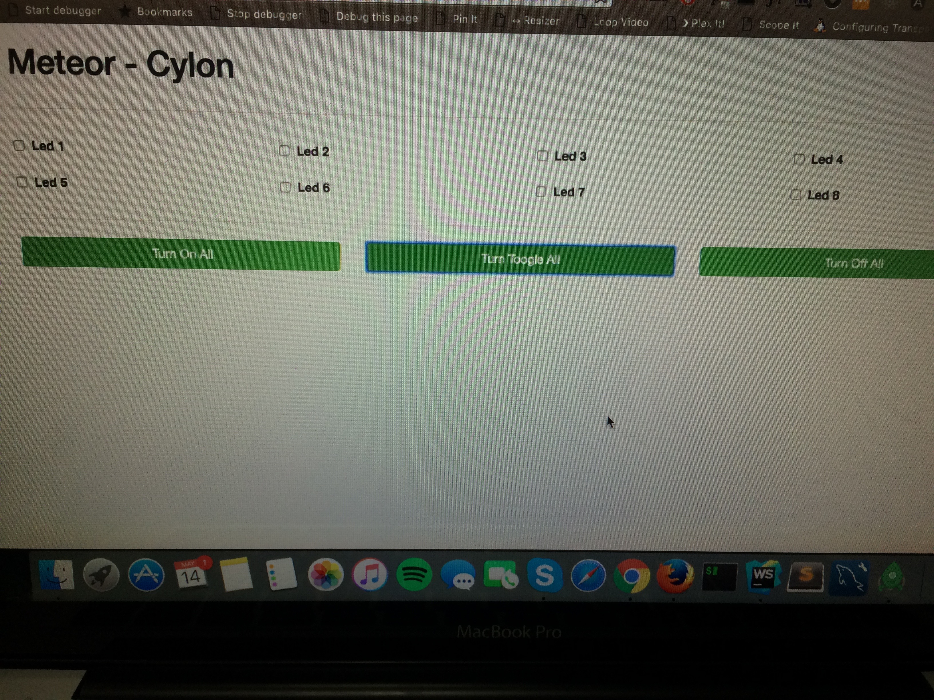 Meteor app, using Arduino Mega2560 and CylonJs (Framework for Robotics), allow control LEDs and Buttons from Web & Mobile.