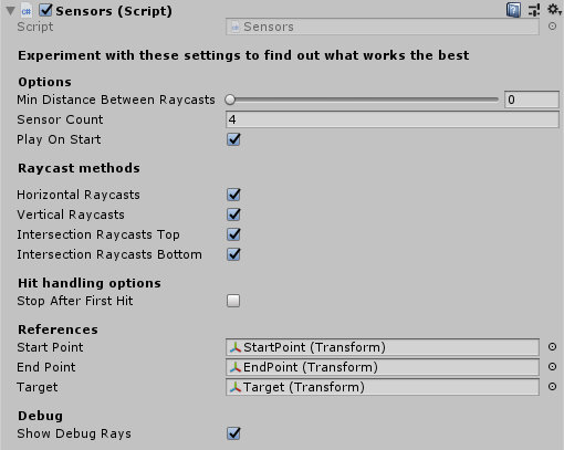 - Add Sensors.cs to a gameObject