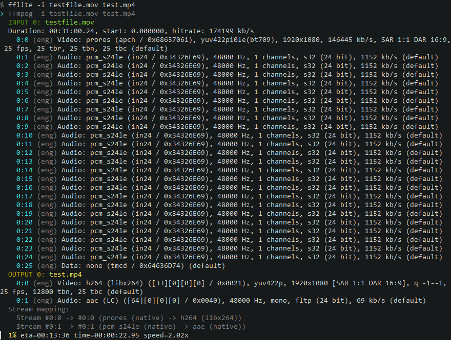 .txtfilelist,"list:file1 file2 \"file 3\""or a glob pattern is passed as input file, only one is allowed (fflite -i *.mp4). - Once the first input file is specified input and output files can be named using