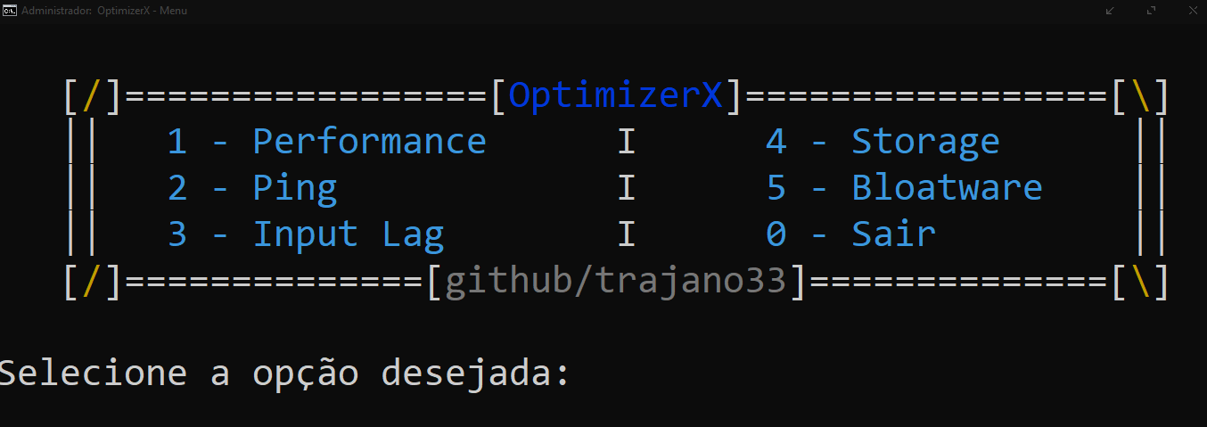 O OptimizerX é uma ferramenta em Batch que automatiza ajustes essenciais do Windows de forma rápida, direta e transparente.