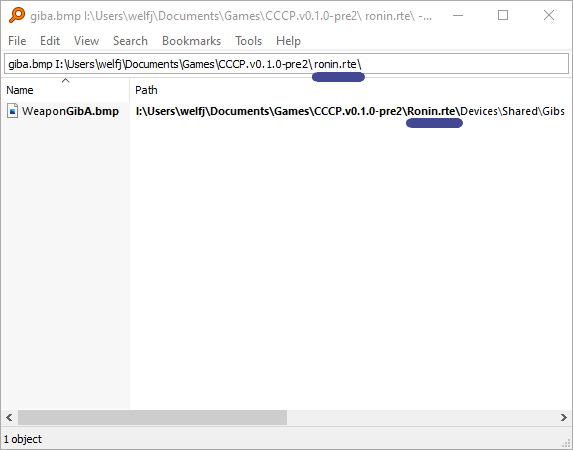 Ronin.rte/Effects/Gibs/GibA.bmpis mentioned, you don't have to search for every single mention of it in every single file. Manually mass replacing stuff can be messed up.
