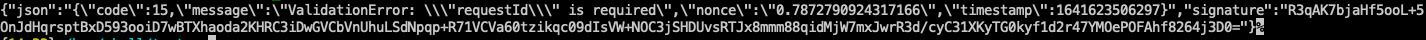 但实际上 api 是有返回具体的错误码和错误信息的: {"json":"{\"code\":15,\"message\":\"ValidationError: \\\"requestId\\\" is required\"},需要在向 api 发送请求前校验传入参数是否合法,避免传入空请求