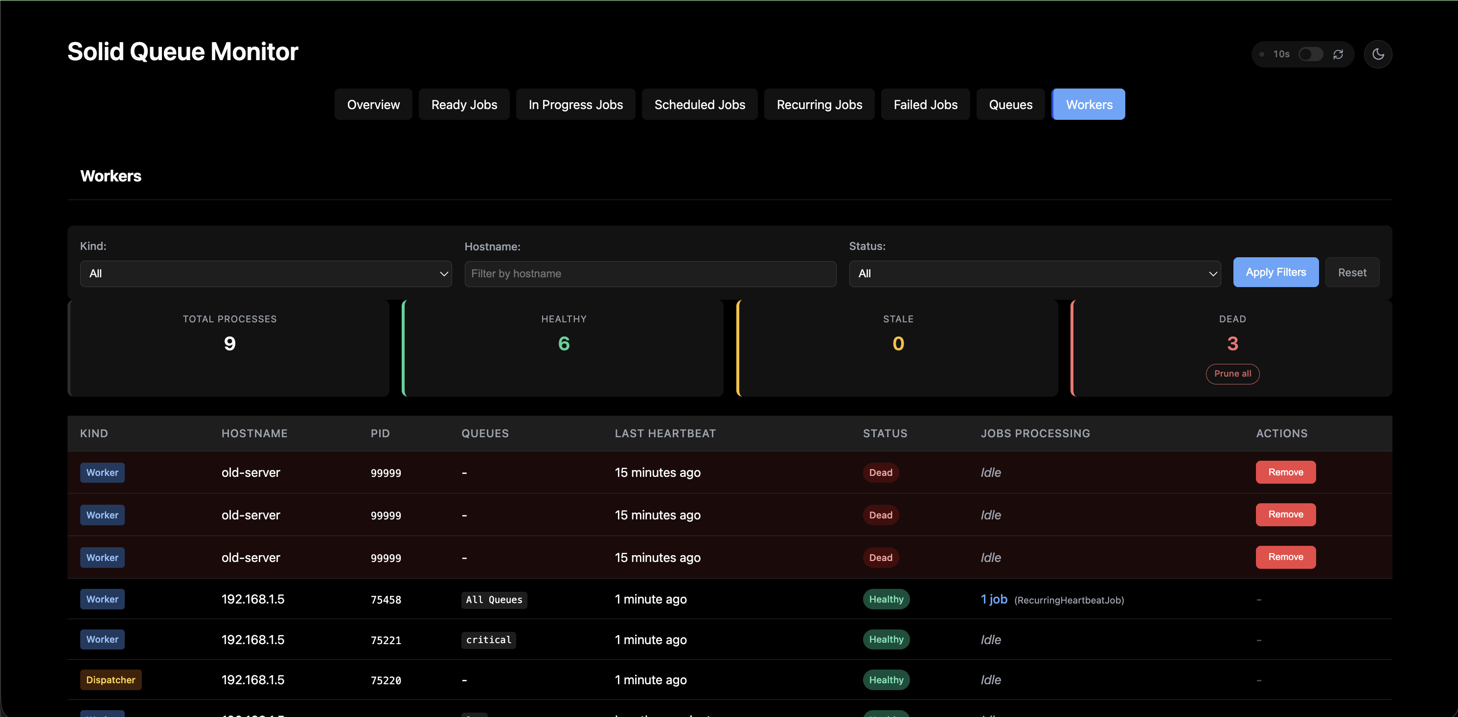 - Prune Dead Processes - Clean up zombie workers with one click