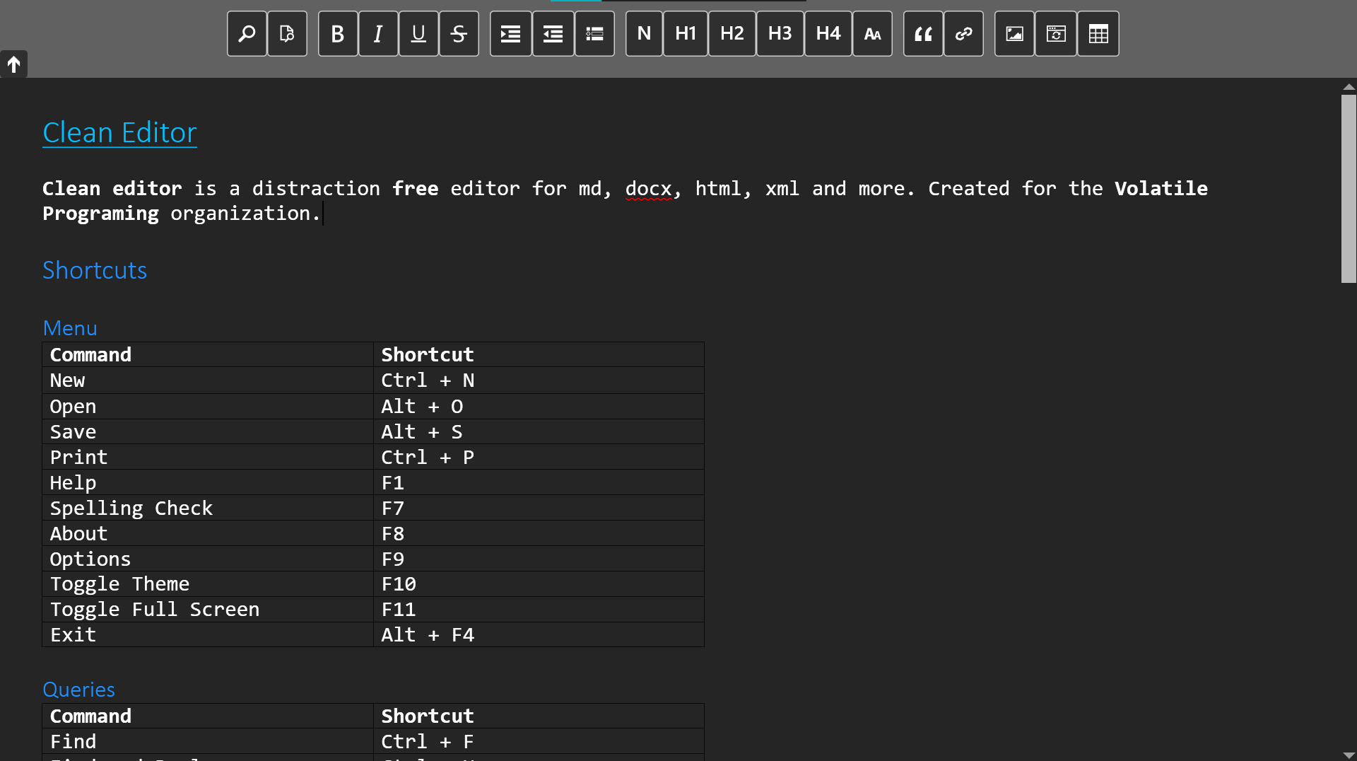 A distraction-free editor for files in .md, .docx, .html, .xml formats among others.